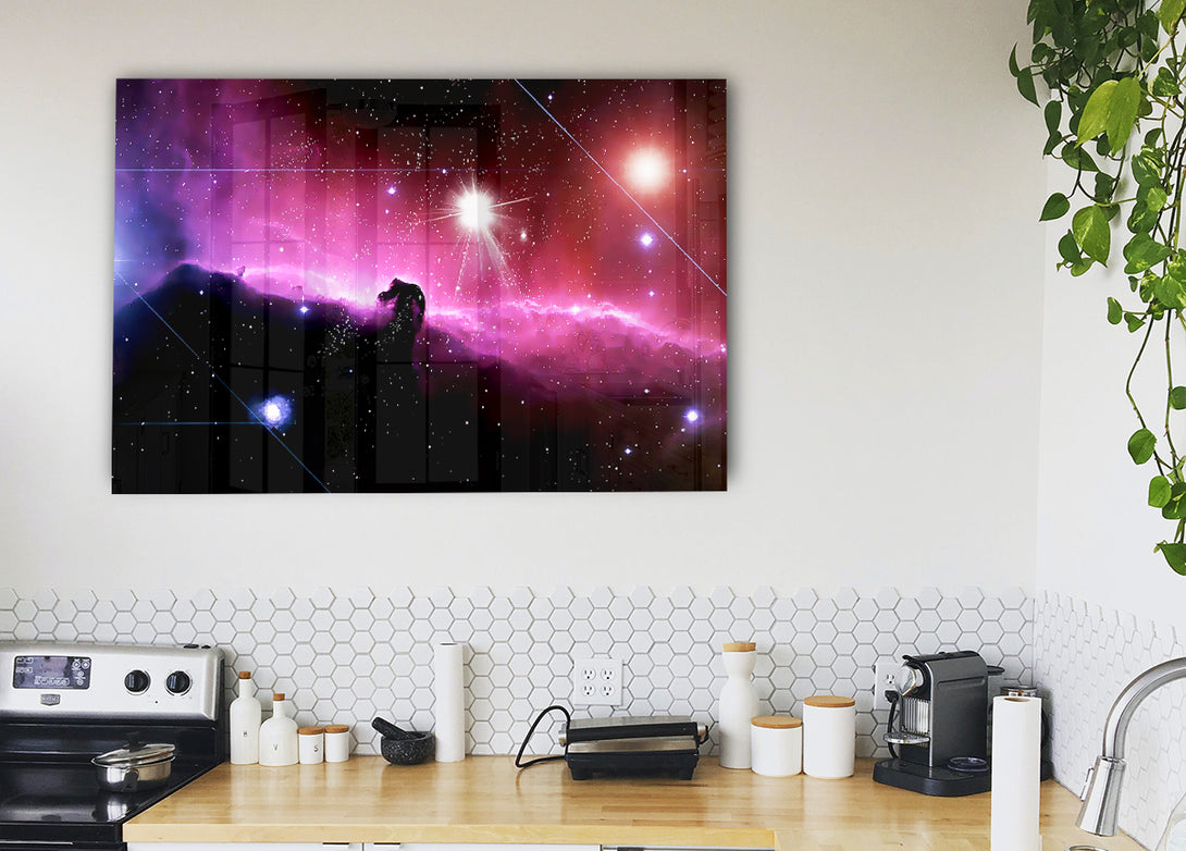 Acryldruck „Pferdekopf-Nebel“, UV-gedruckt auf 5 mm dickes Acrylglas. Wird mit allem geliefert, was Sie zum Aufhängen an die Wand brauchen.