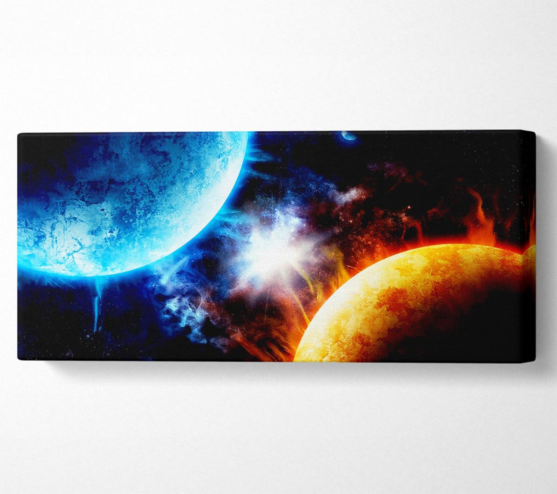 Leinwandbild „Heiße und kalte Galaxien“, gedruckt auf beschichteter Polyester-Leinwand. Auf einem 44 mm großen Kastenrahmen montiert, fertig zum Aufhängen.