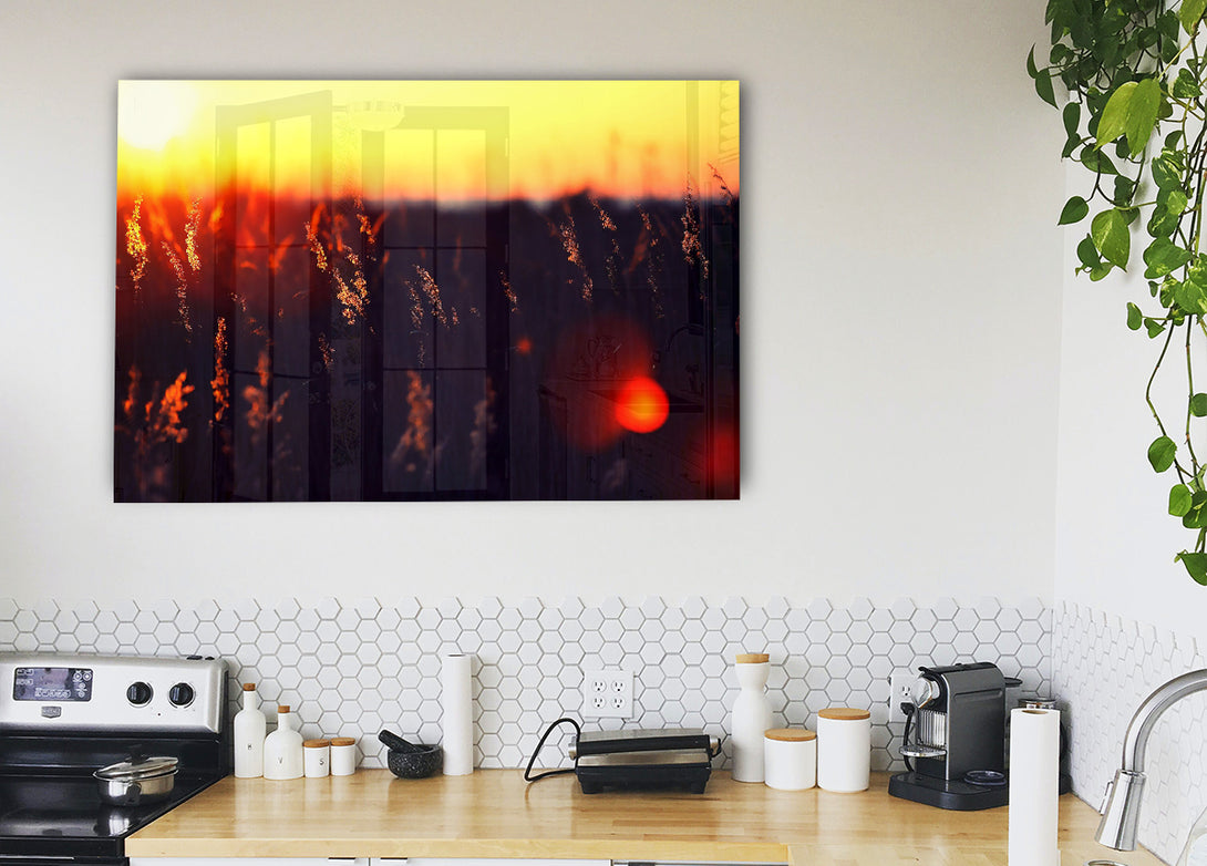 Acryldruck „Hot Sunset“, UV-gedruckt auf 5 mm dickes Acrylglas. Wird mit allem geliefert, was Sie zum Aufhängen an die Wand brauchen.