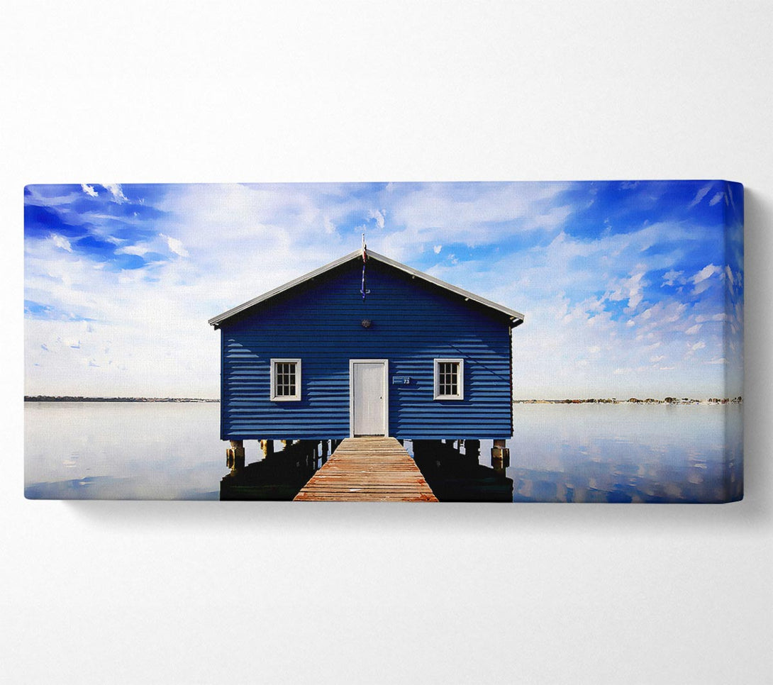 Leinwandbild „House At The End Of The Pier“, gedruckt auf beschichteter Polyester-Leinwand. Auf einem 44 mm großen Kastenrahmen montiert, fertig zum Aufhängen.