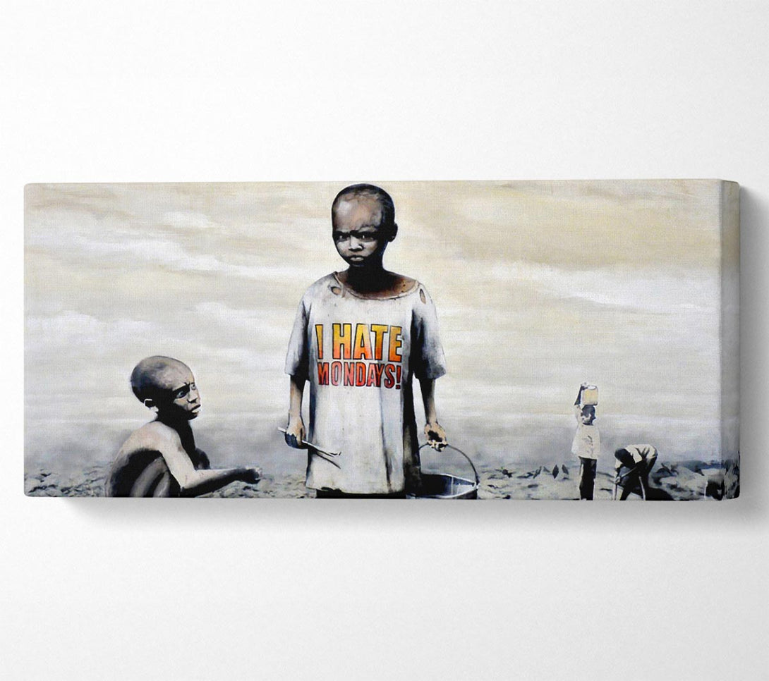 Leinwandbild „I Hate Mondays“, gedruckt auf beschichteter Polyester-Leinwand. Auf einem 44 mm großen Kastenrahmen montiert, fertig zum Aufhängen.