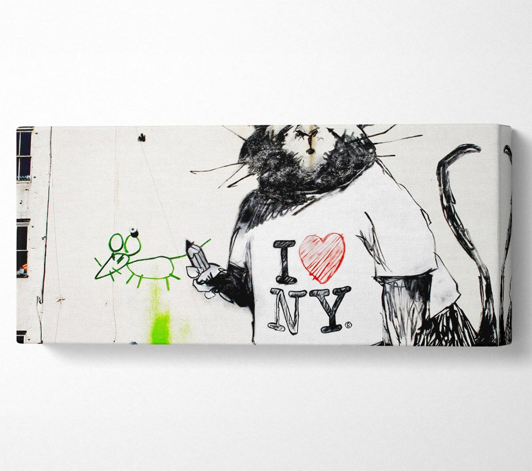 Leinwandbild „I Love New York Rat“, gedruckt auf beschichteter Polyester-Leinwand. Auf einem 44 mm großen Kastenrahmen montiert, fertig zum Aufhängen.