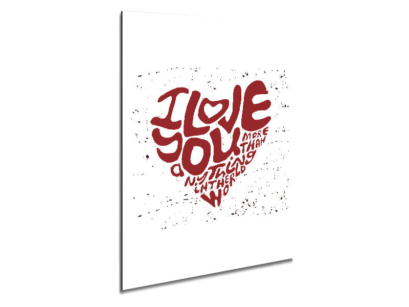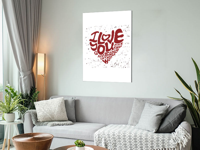 Ich liebe dich mehr als. Gedruckt auf gebürstetem Aluminium-Dibond. Eine moderne Art, Kunst zu präsentieren und leicht zu pflegen.