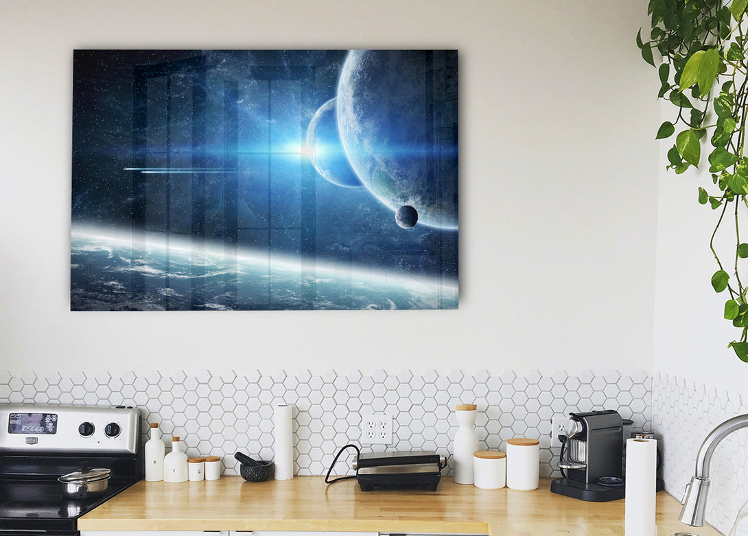 Acryldruck „Ice Blue Planet“, UV-gedruckt auf 5 mm dickes Acrylglas. Wird mit allem geliefert, was Sie zum Aufhängen an die Wand brauchen.