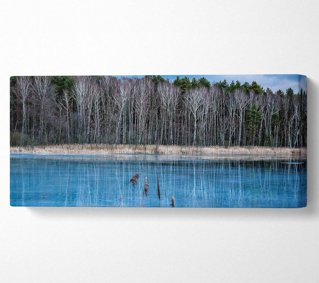 Ice Lake-Leinwand, gedruckt auf beschichteter Polyester-Leinwand. Auf einem 44 mm großen Kastenrahmen montiert, fertig zum Aufhängen.