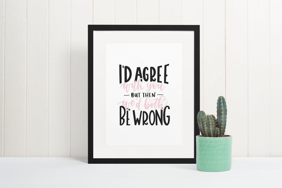 I'd Agree With You But Then We'd Both Be Wrong Sarcastic Humorous Funny Wall Decor Quote Print