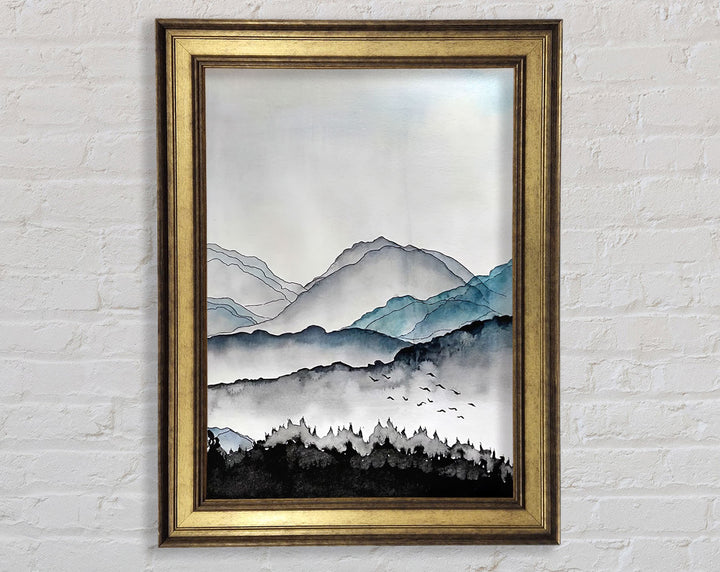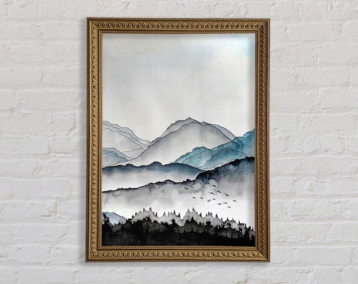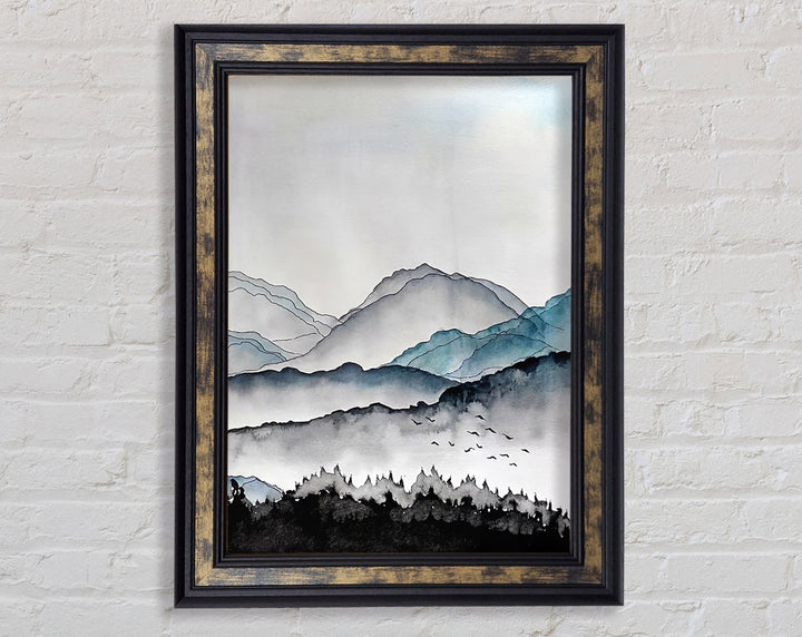 Inky Mountains Framed Print