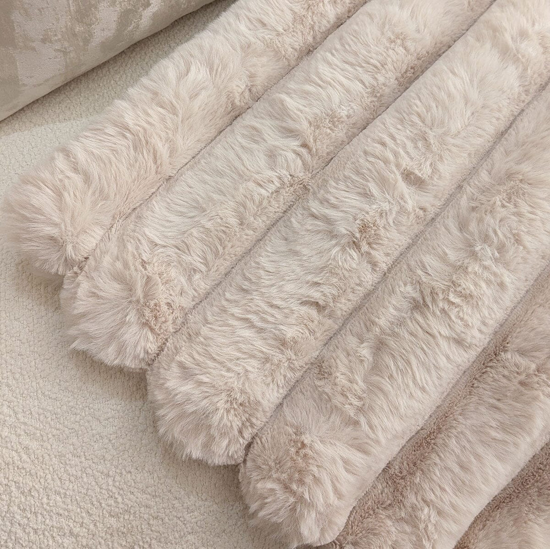Snuggle up with the Isla Oatmeal Chunky Ribbed Faux Fur Throw.