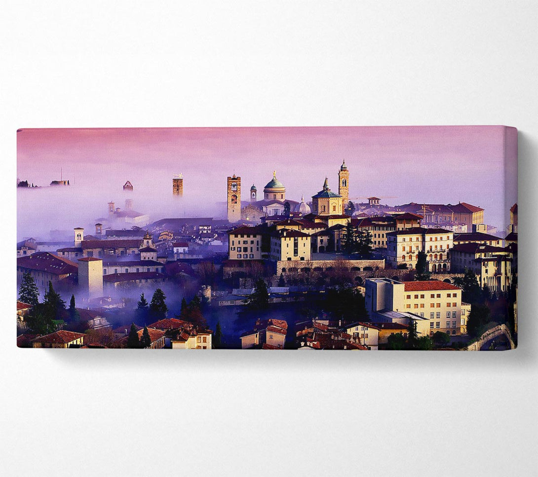 Leinwandbild „Italian City Mist“, gedruckt auf beschichtetem Polyester-Canvas. Auf einem 44 mm großen Kastenrahmen montiert, fertig zum Aufhängen.