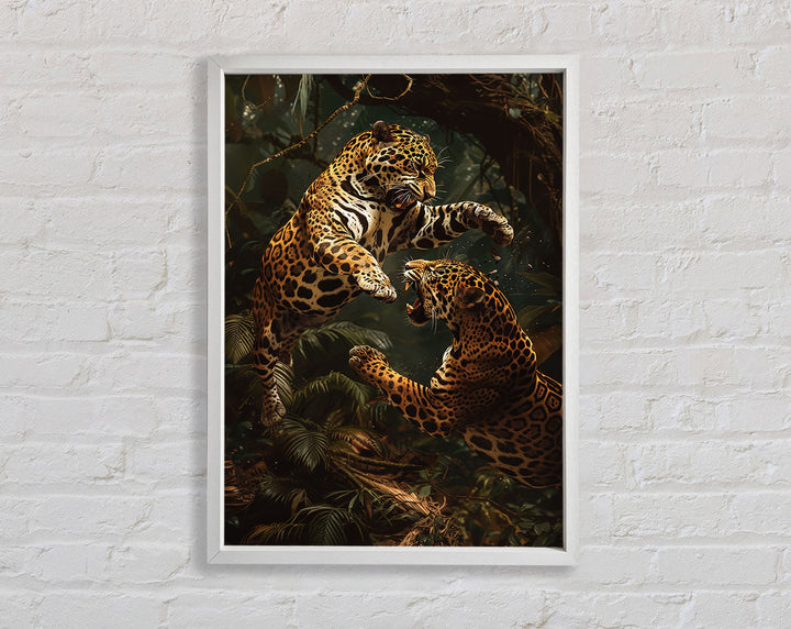 Introducing the Jaguars Fighting Framed Print, a stunning piece of framed art that captures the beauty and power of nature. This striking print showcases two jaguars in an intense battle, bringing a dynamic and captivating scene to your home or office. Available in six sizes, from small to oversized, you can choose the perfect fit for any space. The print comes in a variety of colors, allowing you to match your existing decor effortlessly. Handmade with care in the United Kingdom, each piece is crafted to the highest standard. Ready to hang, this framed print is an easy and elegant way to enhance any room.