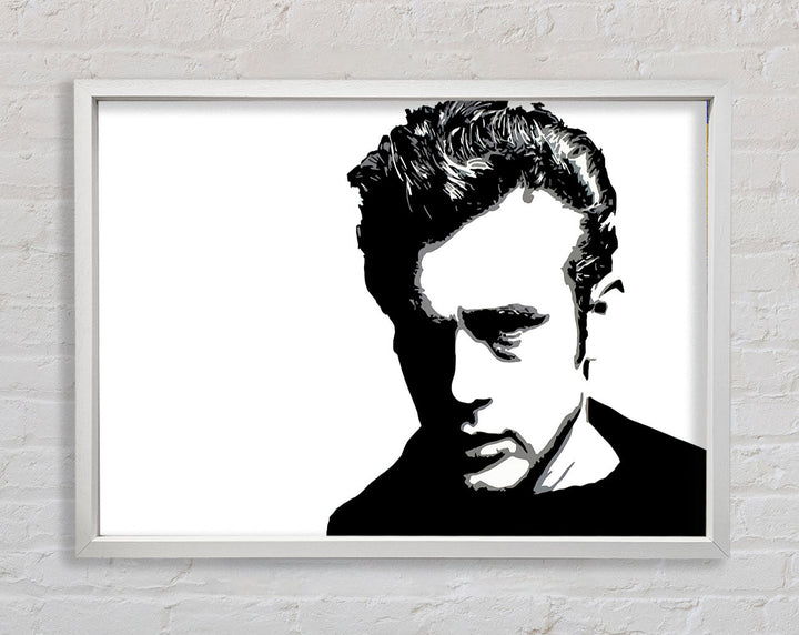 Gerahmter Druck im Pop-Art-Stil von James Dean, erhältlich in mehreren Rahmenfarben. Fertig zum Aufhängen aus der Schachtel und handgefertigt im Vereinigten Königreich.