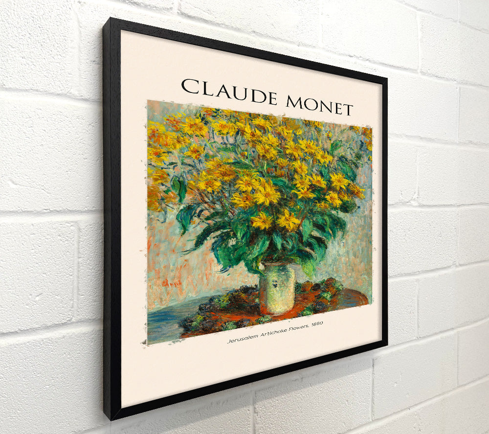 Topinamburblüten, 1880 von Claude Monet, quadratische Leinwand, gedruckt auf beschichteter Polyester-Leinwand. Auf einem 44 mm breiten Kastenrahmen montiert, fertig zum Aufhängen.