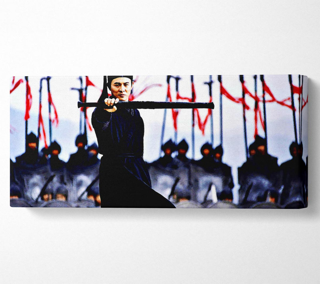 Jet Li Hero-Leinwand, gedruckt auf beschichteter Polyester-Leinwand. Auf einem 44 mm großen Kastenrahmen montiert, fertig zum Aufhängen.