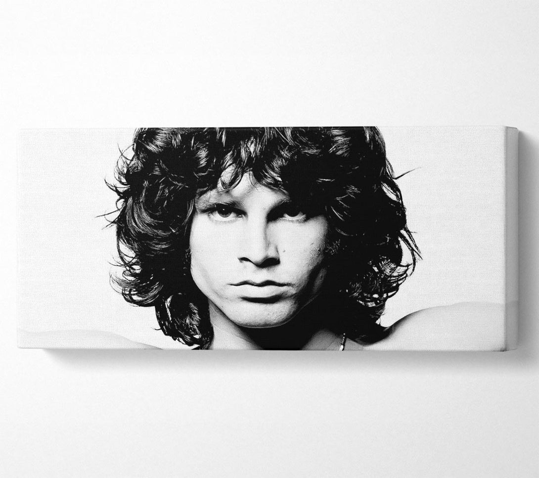 Jim Morrison Face-Leinwand, gedruckt auf beschichteter Polyester-Leinwand. Auf einem 44 mm großen Kastenrahmen montiert, fertig zum Aufhängen.