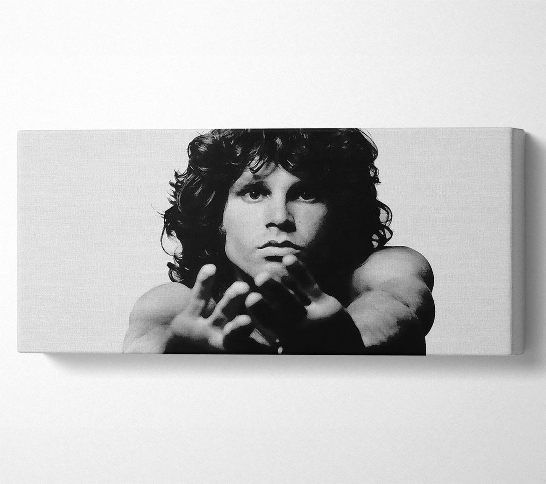 Jim Morrison Touch-Leinwand, gedruckt auf beschichteter Polyester-Leinwand. Auf einem 44 mm großen Kastenrahmen montiert, fertig zum Aufhängen.