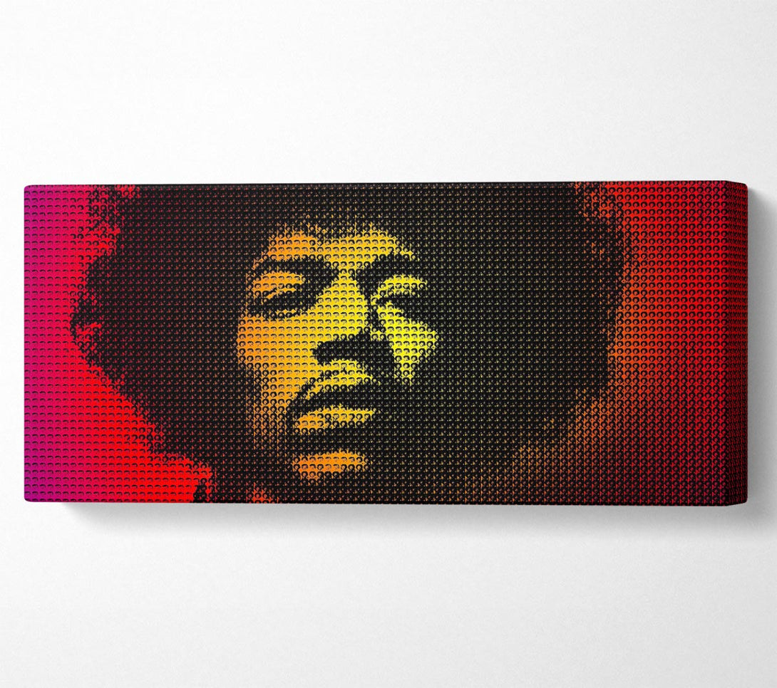 Jimi Hendrix Face-Leinwand, gedruckt auf beschichteter Polyester-Leinwand. Auf einem 44 mm großen Kastenrahmen montiert, fertig zum Aufhängen.