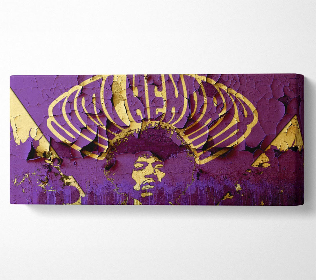 Jimi Hendrix Purple Haze-Leinwand, gedruckt auf beschichteter Polyester-Leinwand. Auf einem 44 mm großen Kastenrahmen montiert, fertig zum Aufhängen.