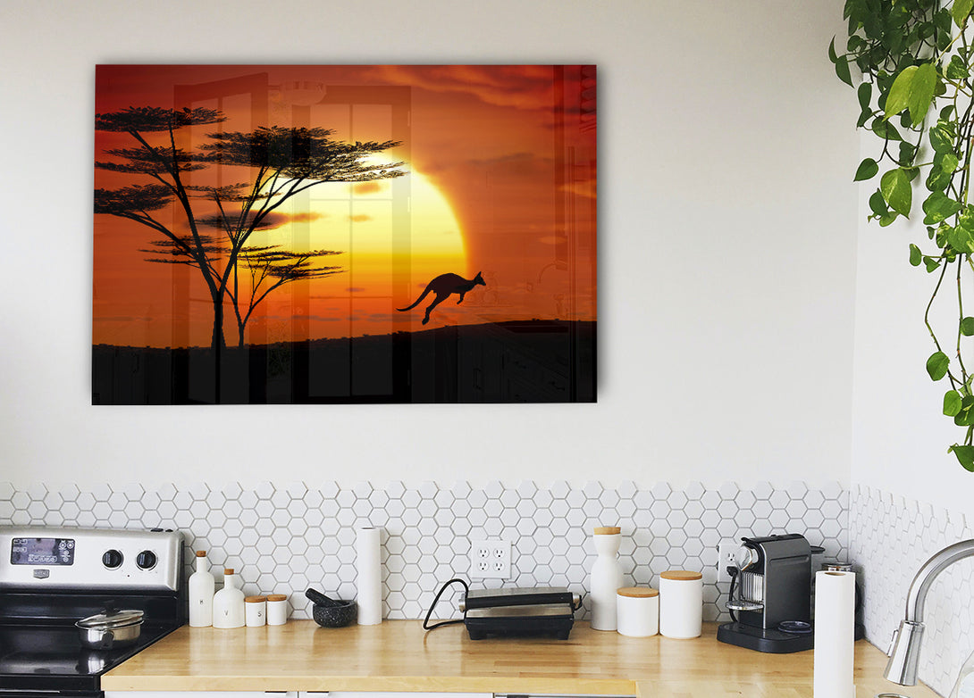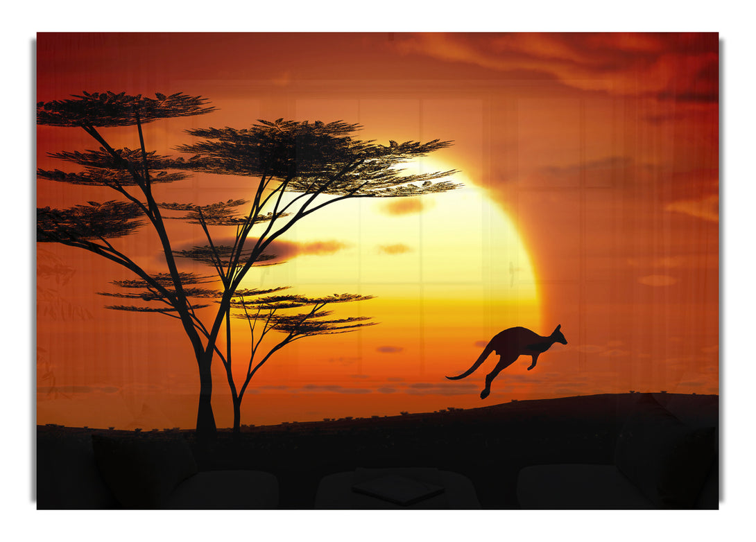 Kangaroo Sun Glow-Acryldruck, UV-gedruckt auf 5 mm dickes Acrylglas. Wird mit allem geliefert, was Sie zum Aufhängen an Ihre Wand benötigen.