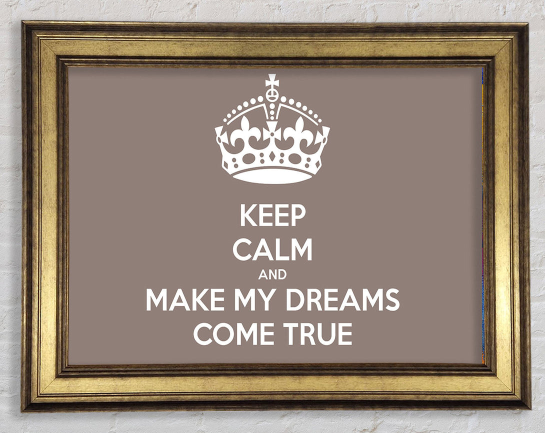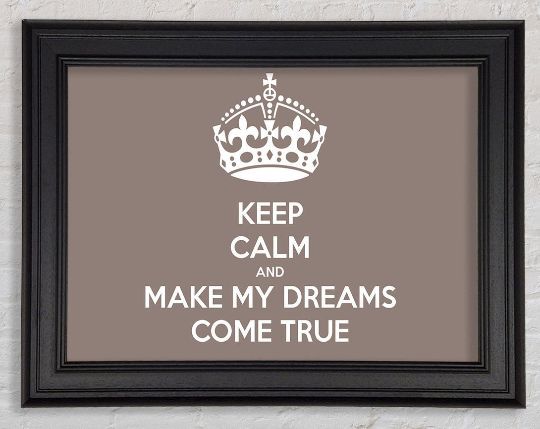 Keep Calm Make Your Dreams Come True Beige Framed Print