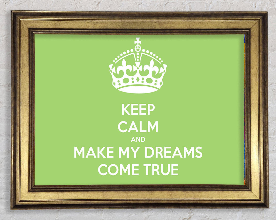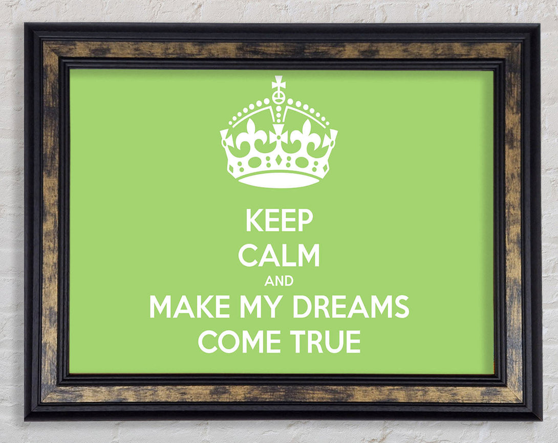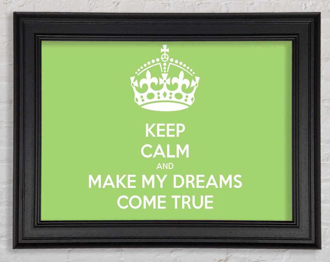 Keep Calm Make Your Dreams Come True Lime Green Framed Print