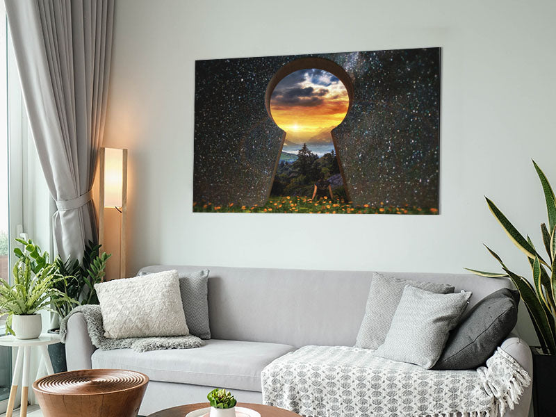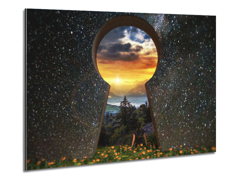 Key Hole Universe Gedruckt auf gebürstetem Aluminium-Dibond. Eine moderne Art, Kunst zu präsentieren und leicht zu pflegen.
