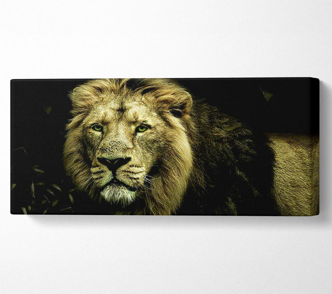Leinwandbild „King Of The Jungle Stare“, gedruckt auf beschichteter Polyester-Leinwand. Auf einem 44 mm großen Kastenrahmen montiert, fertig zum Aufhängen.