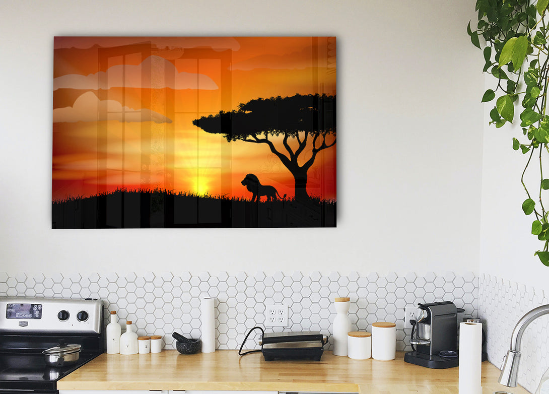King Of The Jungle Sun Blaze-Acryldruck, UV-gedruckt auf 5 mm dickes Acrylglas. Wird mit allem geliefert, was Sie zum Aufhängen an Ihre Wand benötigen.