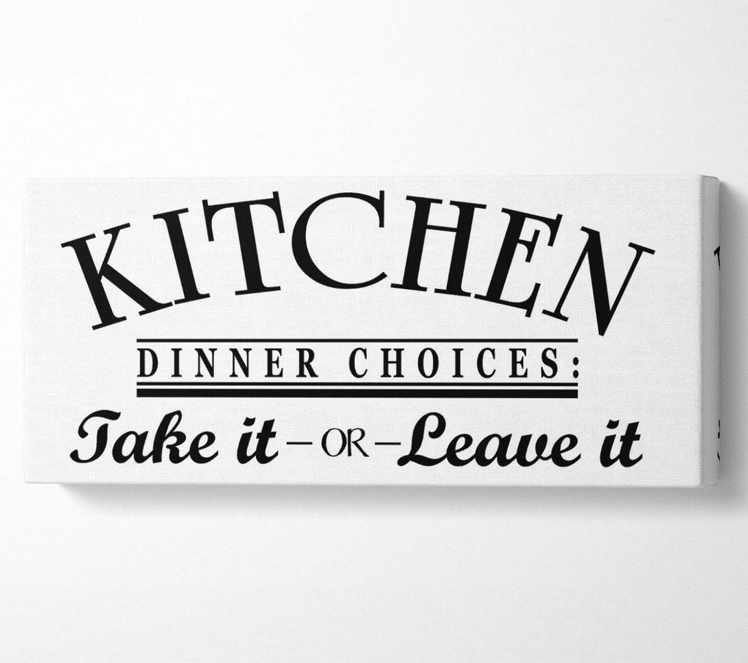 Leinwandbild „Kitchen Quote Dinner Choices“, gedruckt auf beschichteter Polyester-Leinwand. Auf einem 44 mm großen Kastenrahmen montiert, fertig zum Aufhängen.