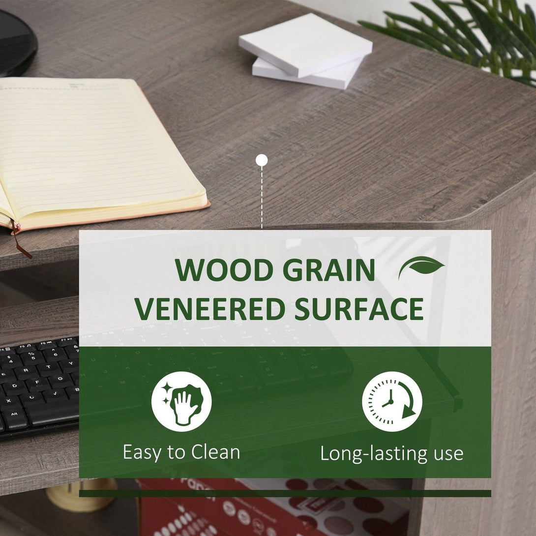 L-Shaped Corner Computer Desk w/ 2 Shelves Wide Worktop Keyboard Tray Drawer & CPU Stand Home Office Study Bedroom Furniture Grey