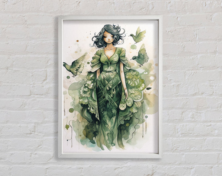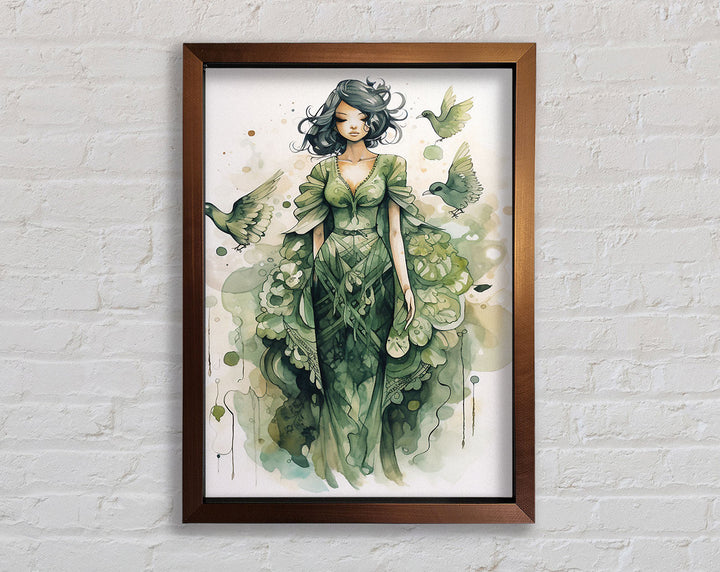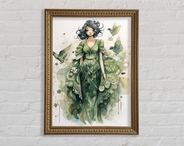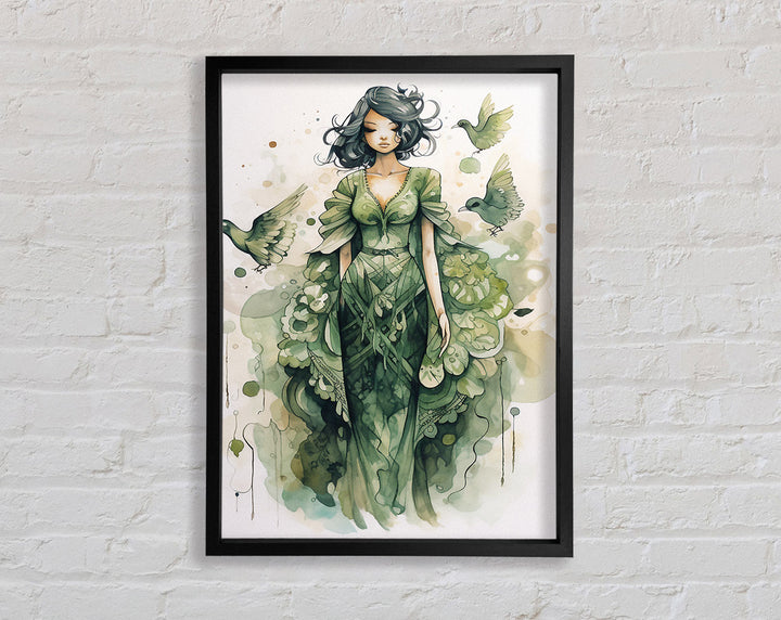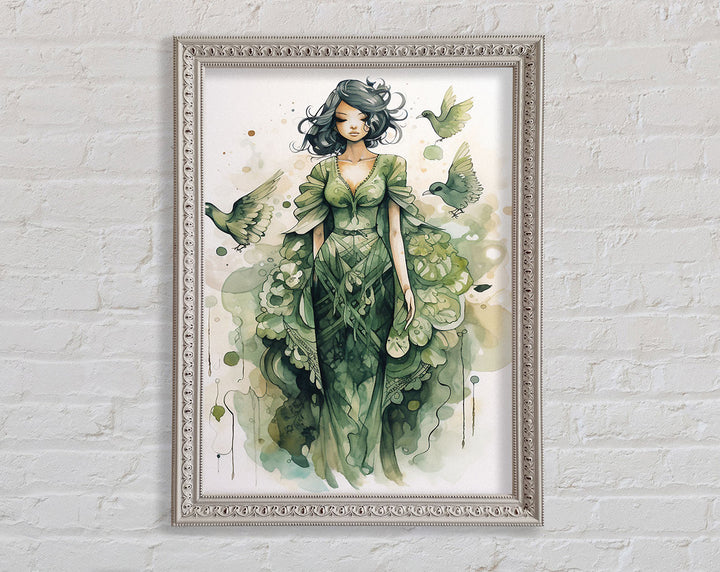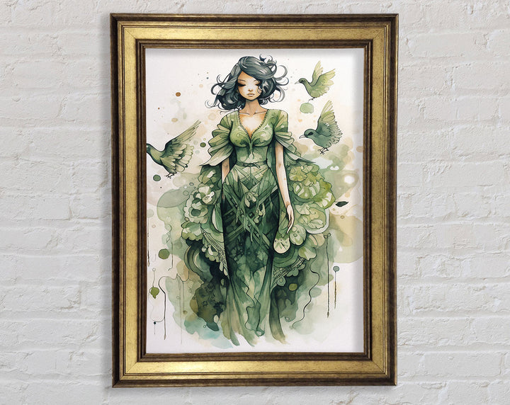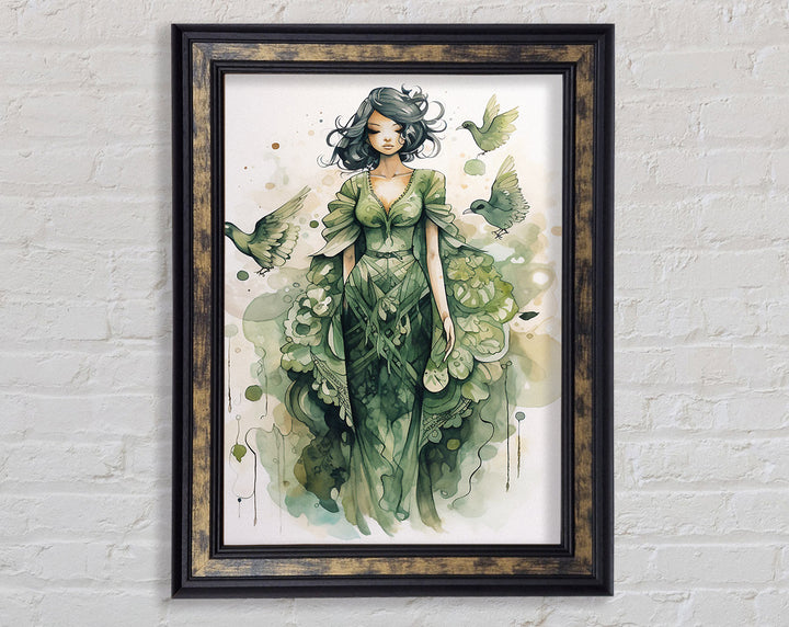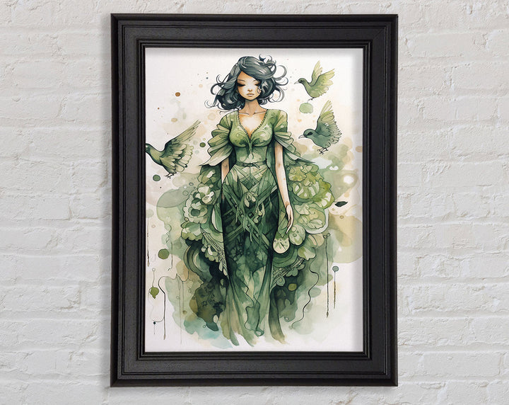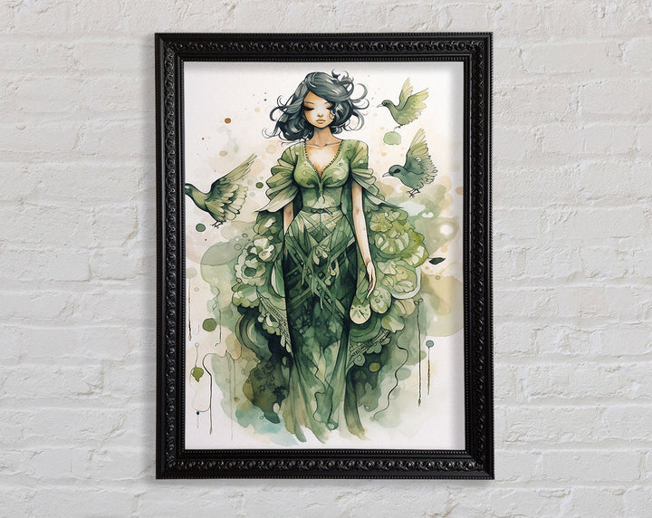 Introducing the Lady In Green Framed Print, a stunning piece of framed art that adds elegance to any space. This beautiful artwork captures a graceful lady in shades of green, bringing tranquility and charm to your home or office. Available in six sizes ranging from small to oversized, you can choose the perfect fit for your wall. The frame comes in a variety of colors, allowing you to match it seamlessly with your décor. Each piece is handmade in the United Kingdom, ensuring top-notch craftsmanship and quality. Ready to hang, this framed print makes decorating easy and hassle-free. Elevate your interior with the timeless beauty of the Lady In Green Framed Print.