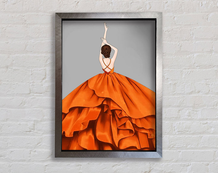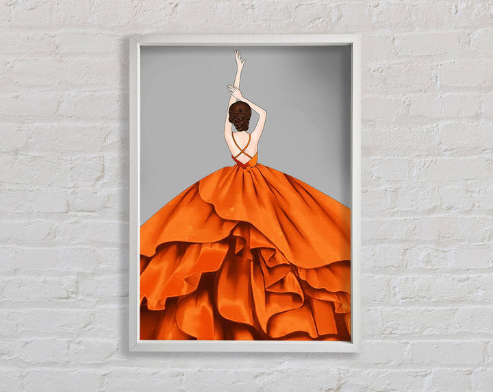 Introducing the Lady In Large Orange Dress Framed Print, a stunning piece of framed art that adds elegance to any space. This exquisite print features a graceful lady in a vibrant orange dress, capturing timeless beauty and sophistication. Available in six sizes, from small to oversized, you can find the perfect fit for your home or office. With a variety of frame colors to choose from, you can easily match your decor. Each piece is handmade in the United Kingdom, ensuring high-quality craftsmanship. Ready to hang upon arrival, this framed print makes decorating simple and stylish. Elevate your interior with this beautiful framed art today!