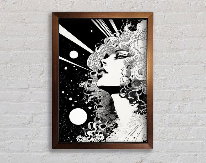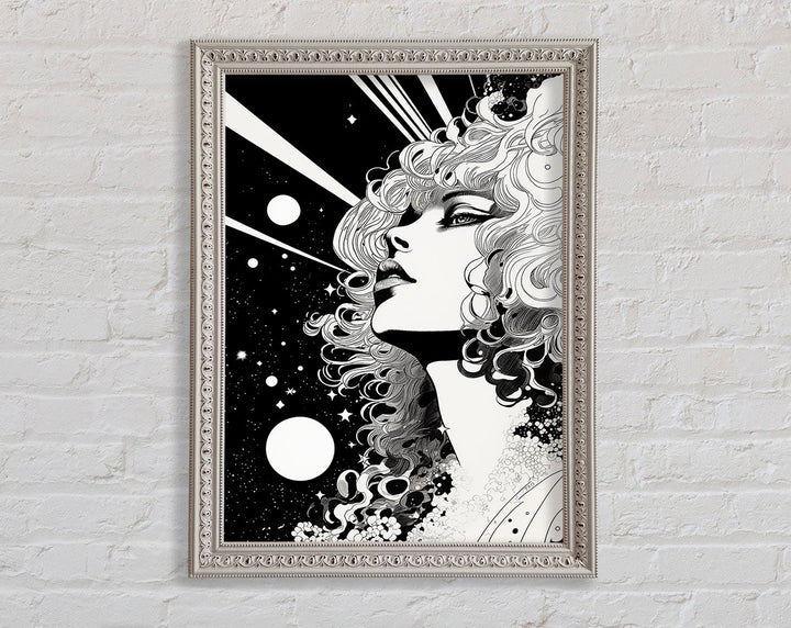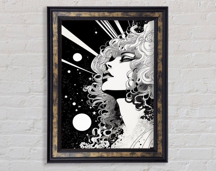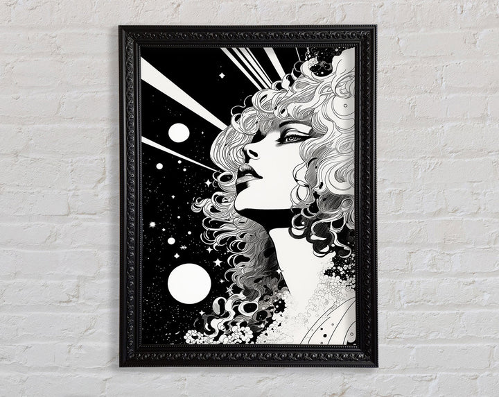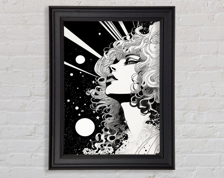 Discover the captivating beauty of the Lady Looking Into Space Framed Print, a stunning piece of framed art that adds a touch of elegance to any room. Available in six sizes, from small to oversized, this print fits perfectly into any space. Choose from a variety of colors to match your home decor. Each piece is handcrafted with care in the United Kingdom, ensuring top-notch quality and uniqueness. The print comes ready to hang, making it easy to instantly transform your living area, bedroom, or office. Elevate your interior design with this exquisite framed art that invites wonder and imagination.