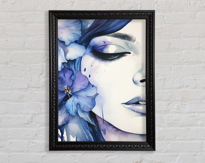 Lady With A Blue Flower Framed Print