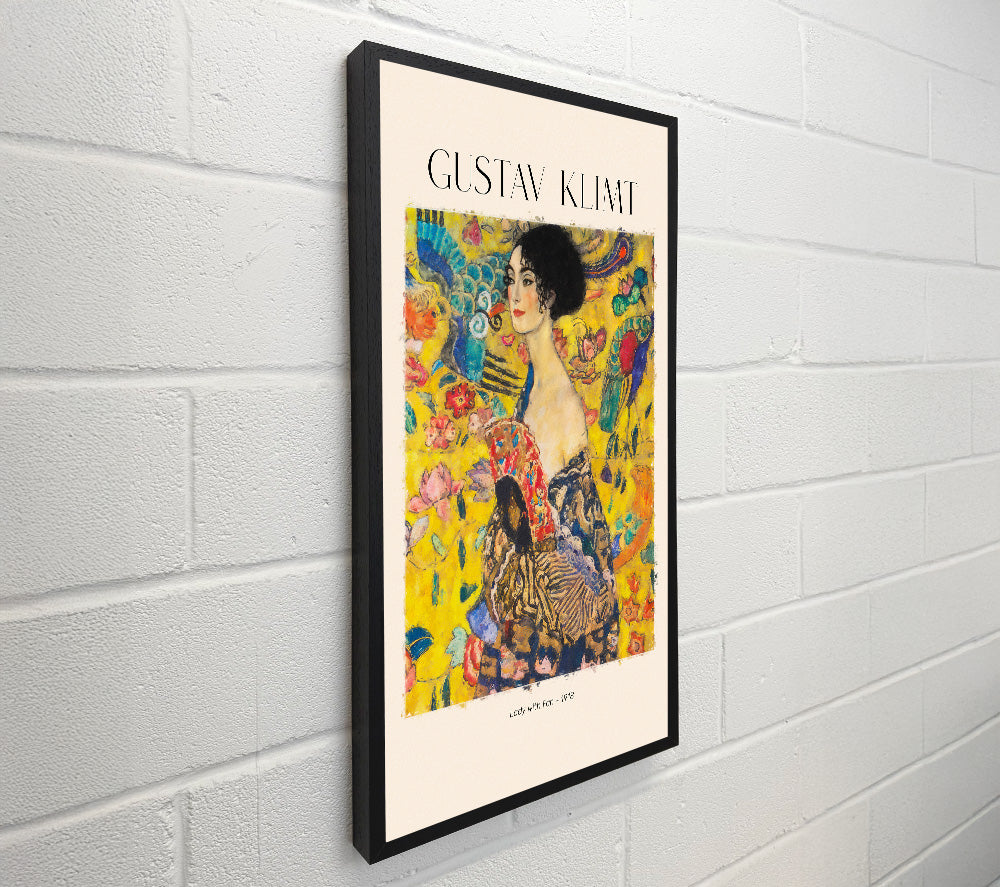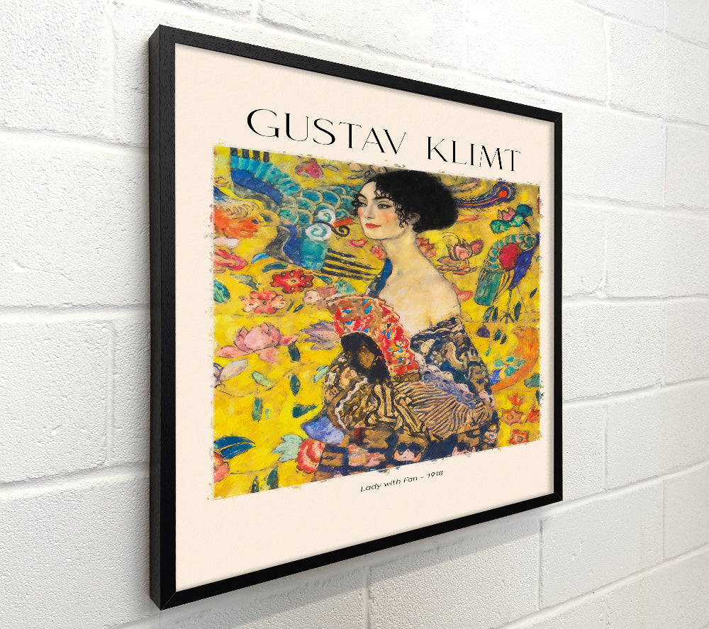 Dame mit Fächer – 1918 von Gustav Klimt, quadratische Leinwand, gedruckt auf beschichteter Polyester-Leinwand. Auf einem 44 mm breiten Kastenrahmen montiert, fertig zum Aufhängen.