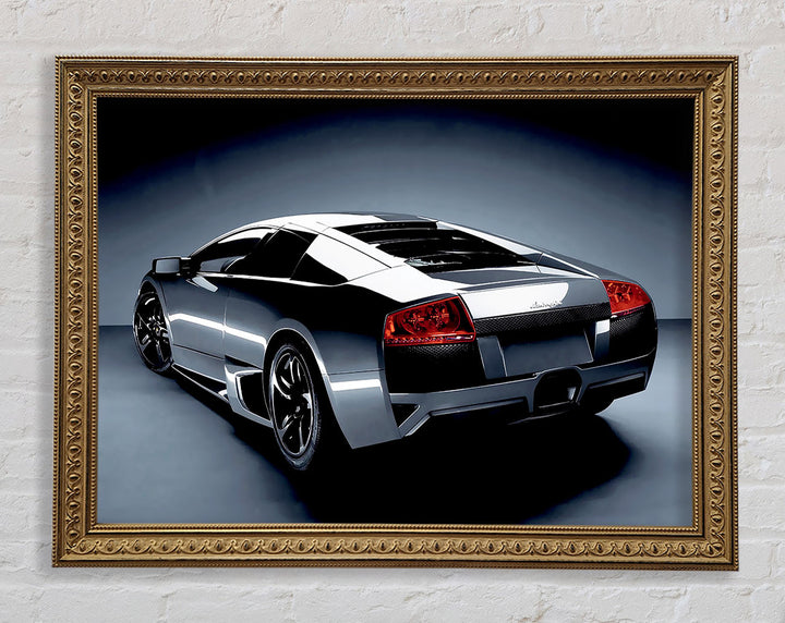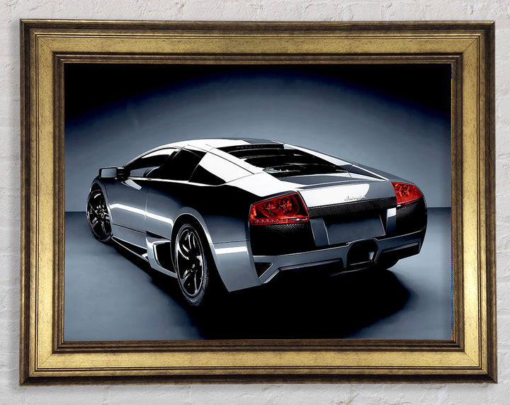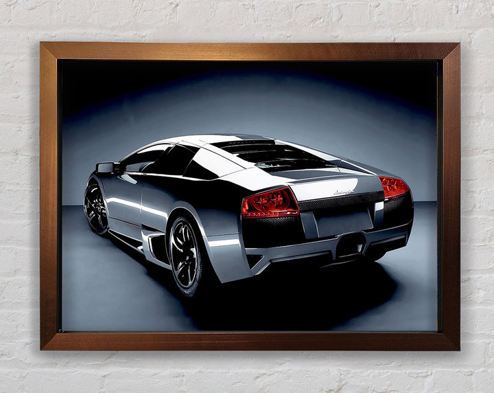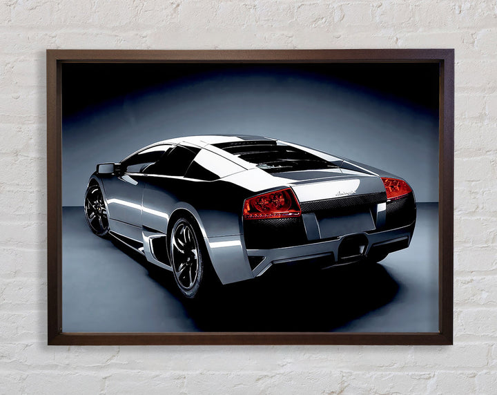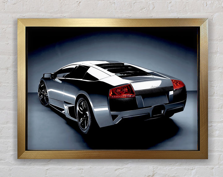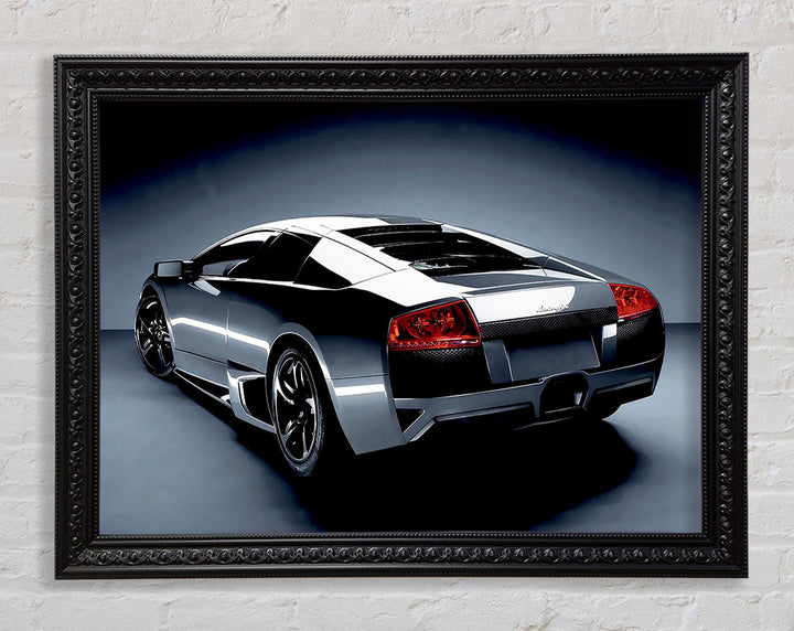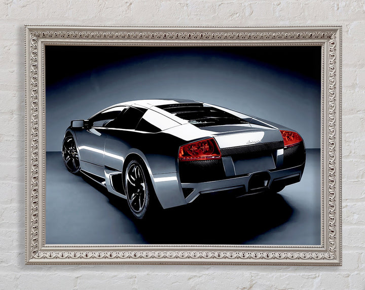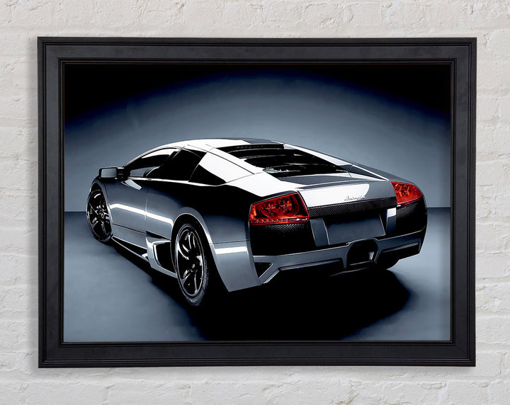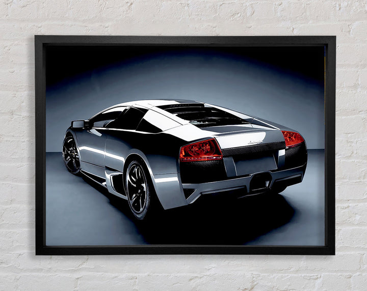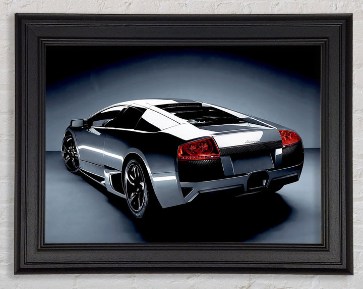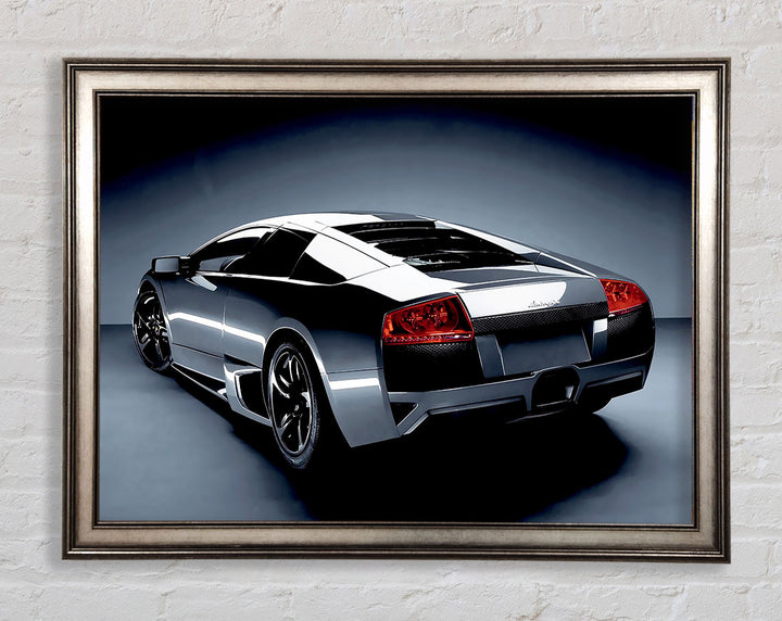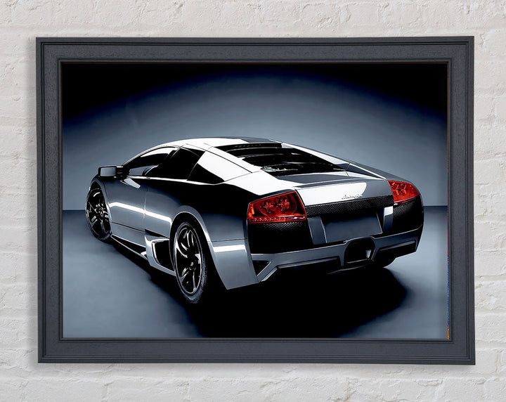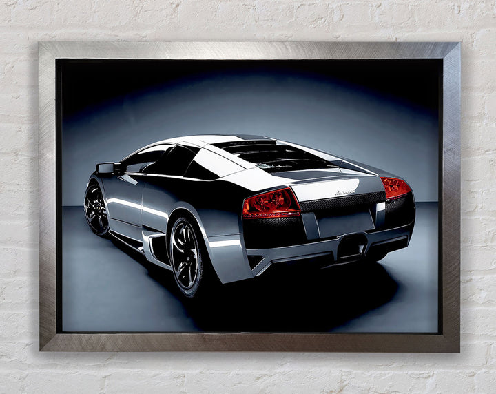 Gerahmter Druck „Lamborghini Rear Gunmetal Silver“, erhältlich in mehreren Rahmenfarben. Fertig zum Aufhängen aus der Schachtel und handgefertigt im Vereinigten Königreich.