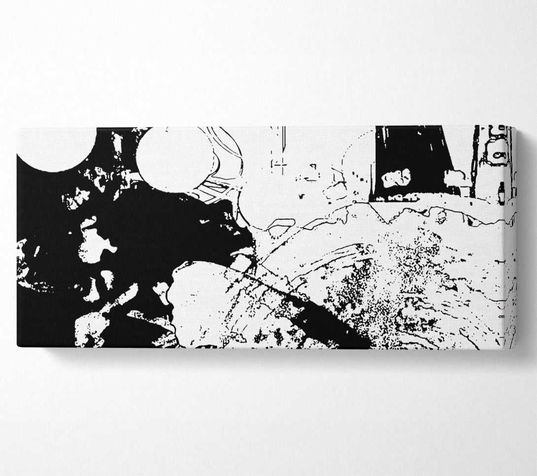 Laternen in der Nacht, weiß auf lila Leinwand, gedruckt auf beschichteter Polyester-Leinwand. Auf einem 44 mm großen Kastenrahmen montiert, fertig zum Aufhängen.