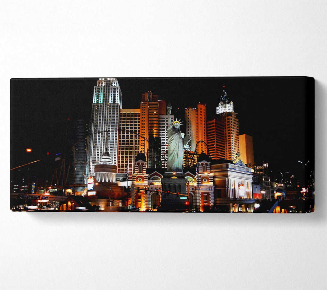 Leinwandbild mit der Freiheitsstatue von Las Vegas, gedruckt auf beschichtetem Polyester-Canvas. Auf einem 44 mm großen Kastenrahmen montiert, fertig zum Aufhängen.