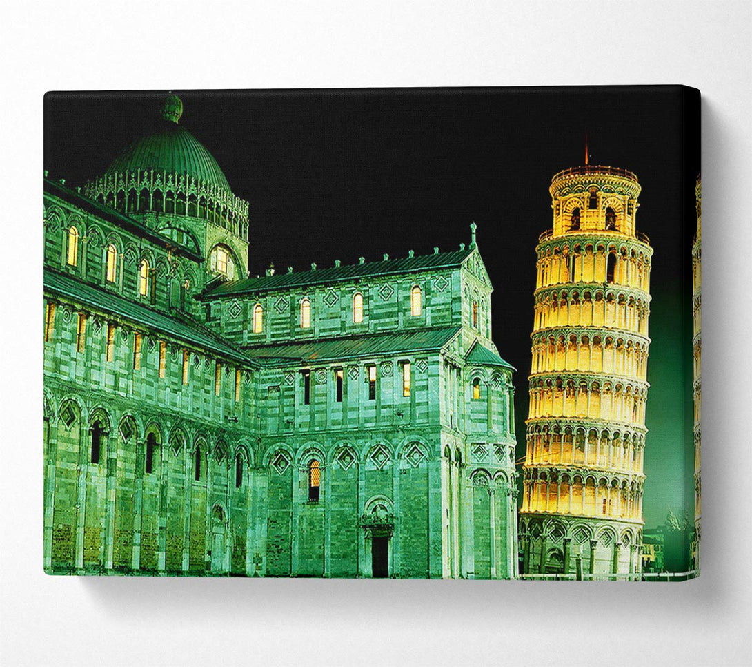 Leaning Tower Of Pisa Green Hue Canvas Wall Art