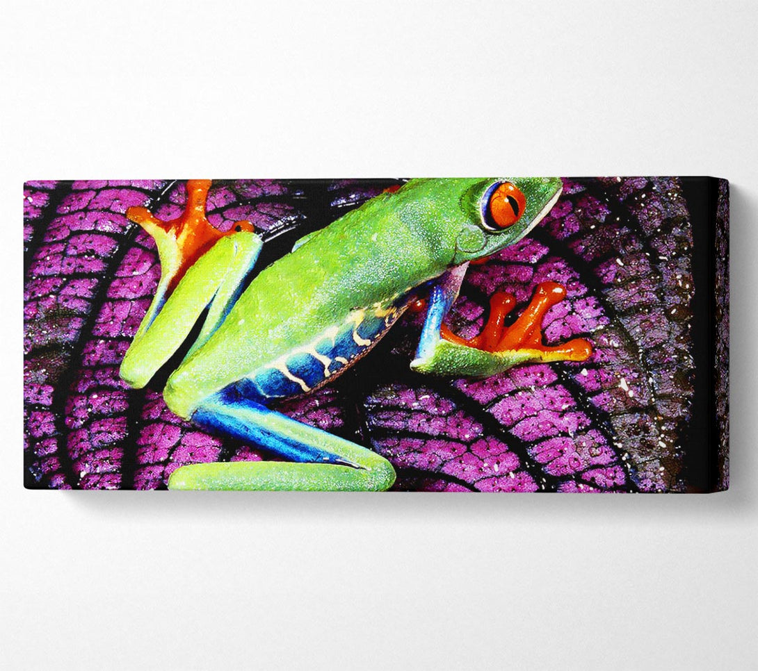 Leap Frog-Leinwand, gedruckt auf beschichteter Polyester-Leinwand. Auf einem 44 mm großen Kastenrahmen montiert, fertig zum Aufhängen.