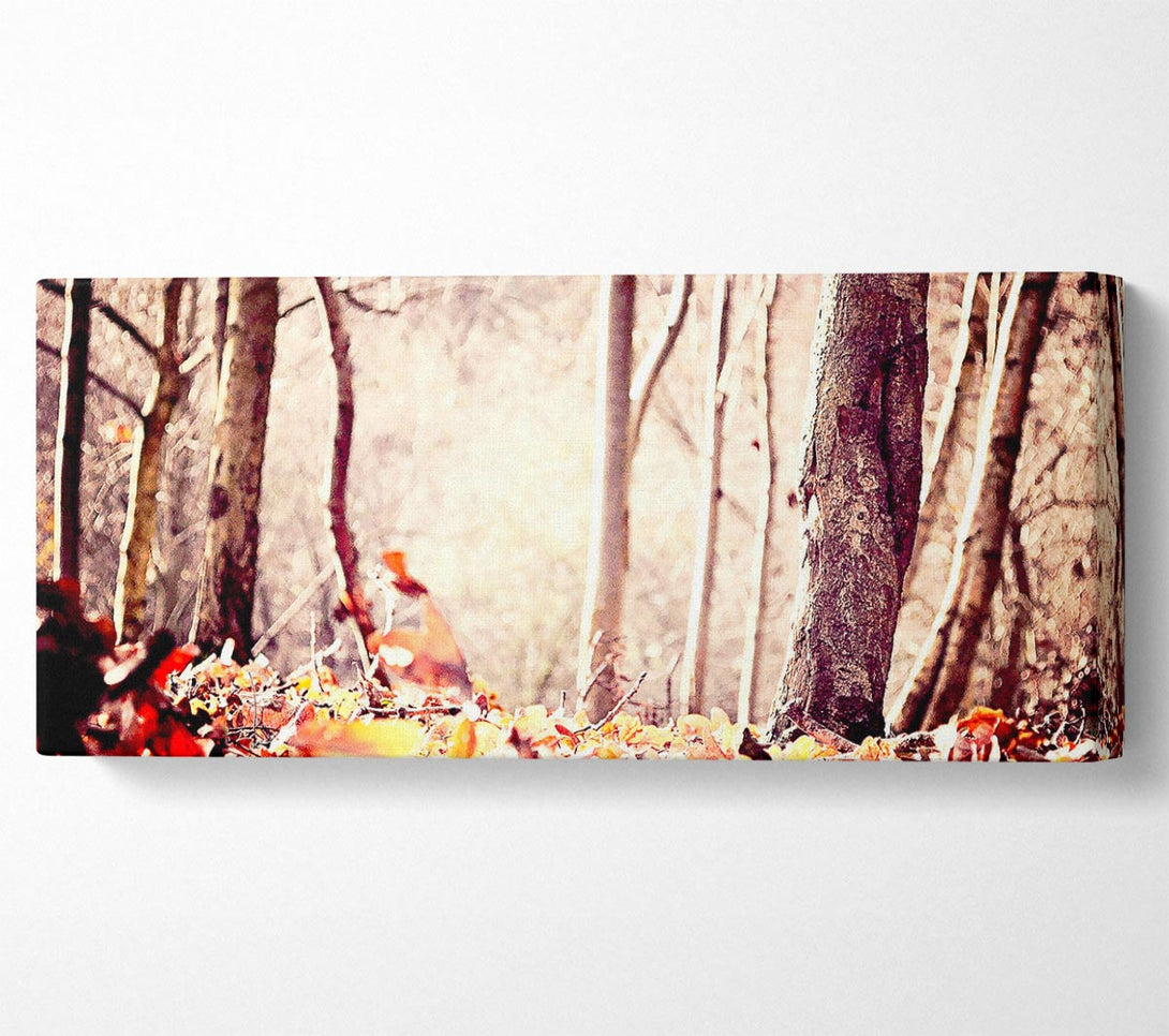 Leinwandbild „Blätter auf dem Herbstboden“, gedruckt auf beschichteter Polyester-Leinwand. Auf einem 44 mm großen Kastenrahmen montiert, fertig zum Aufhängen.