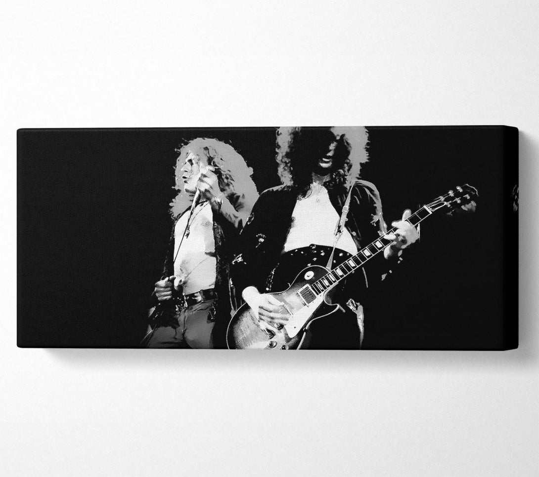 Led Zeppelin On Stage-Leinwand, gedruckt auf beschichteter Polyester-Leinwand. Auf einem 44 mm großen Kastenrahmen montiert, fertig zum Aufhängen.