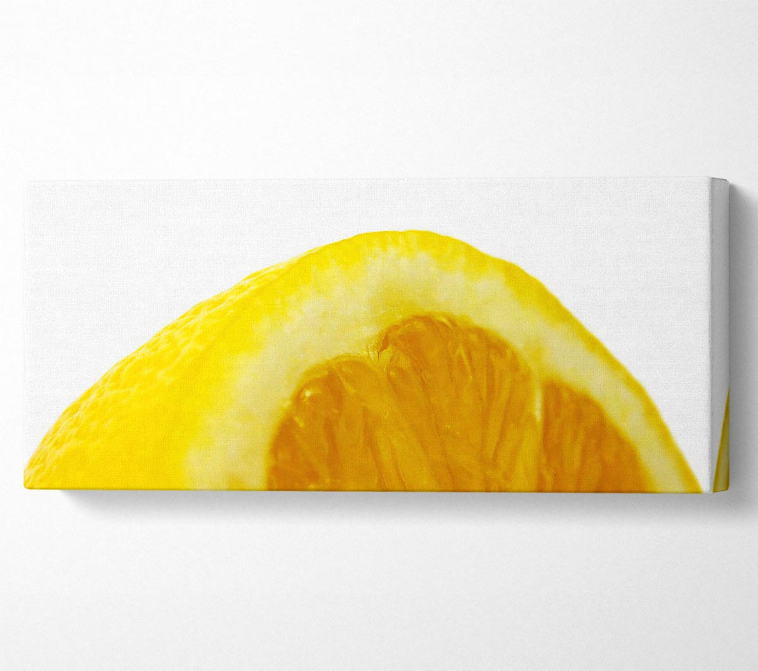 Zitronenscheibe-Leinwand, gedruckt auf beschichteter Polyester-Leinwand. Auf einem 44 mm großen Kastenrahmen montiert, fertig zum Aufhängen.