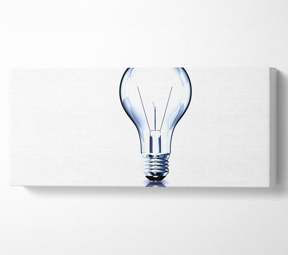 Leinwandbild „Glühbirne“, gedruckt auf beschichtetem Polyester-Canvas. Auf einem 44 mm großen Kastenrahmen montiert, fertig zum Aufhängen.