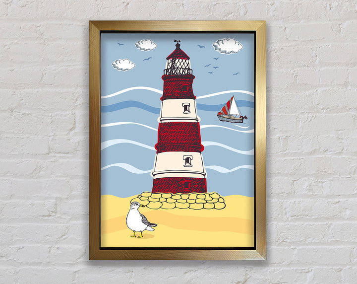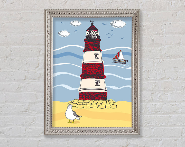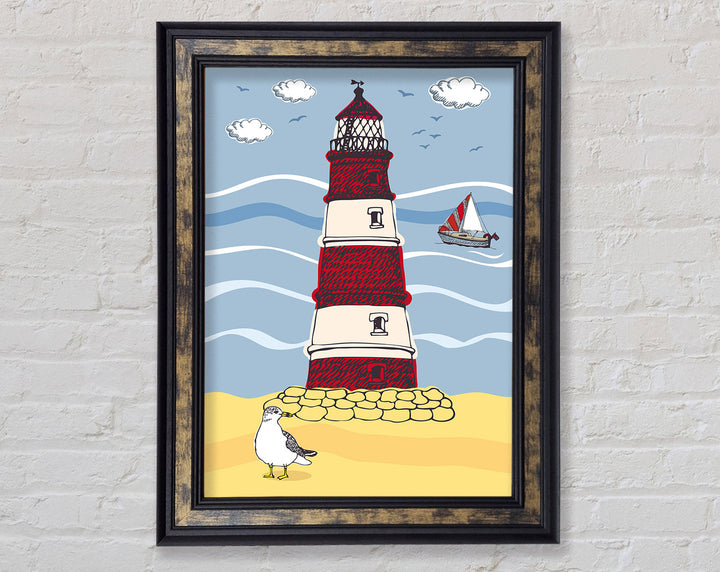 Introducing the Light House Bird Watch Framed Print, a charming piece of framed art that brings nature's beauty into your home. Available in six sizes, from small to oversized, this print can fit any space perfectly. The vibrant colors capture the serene moment of birds watching by a lighthouse, adding a touch of tranquility to your room.