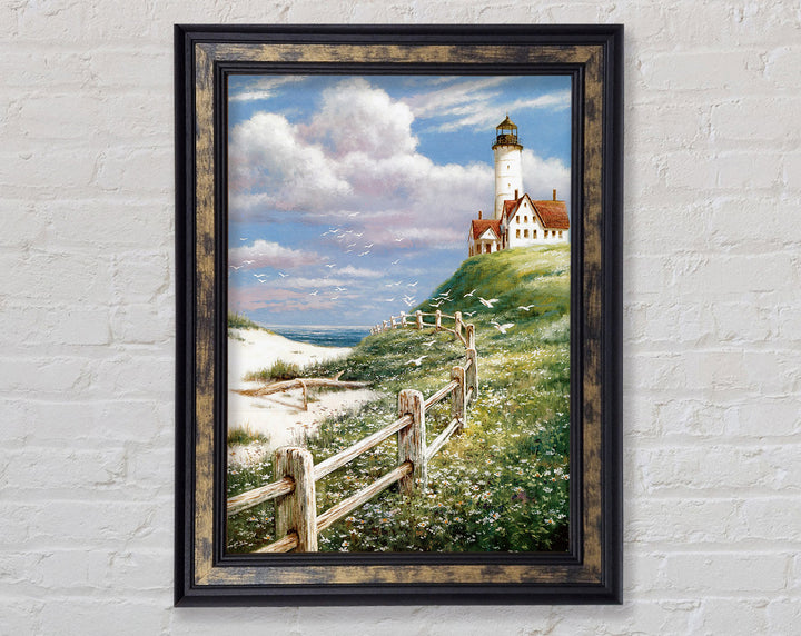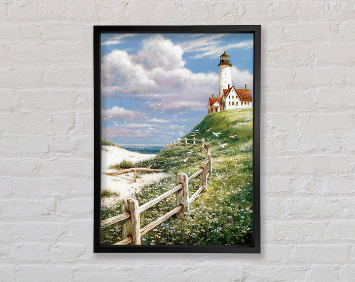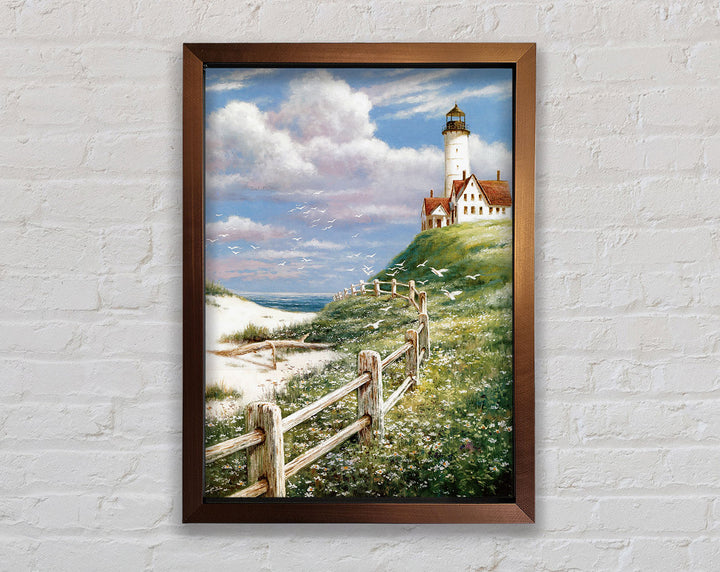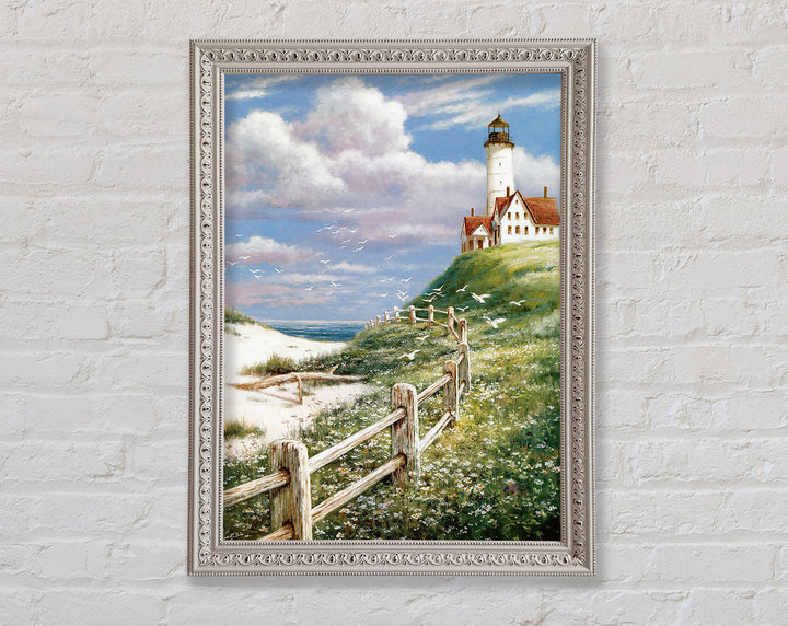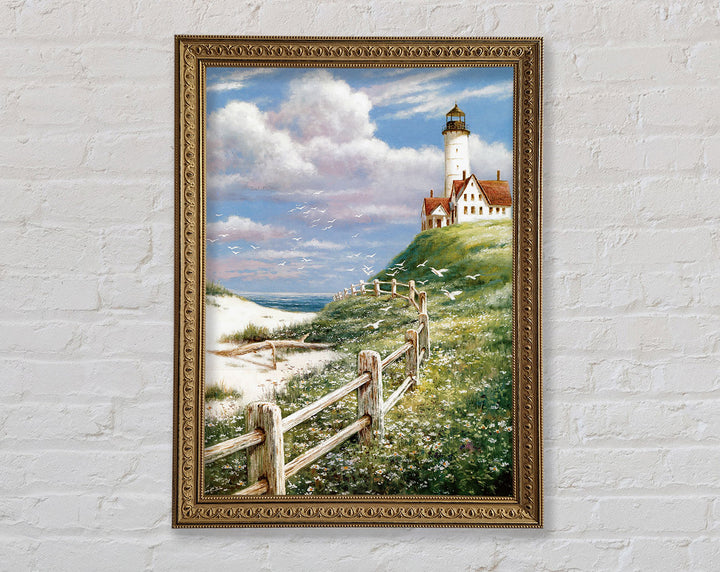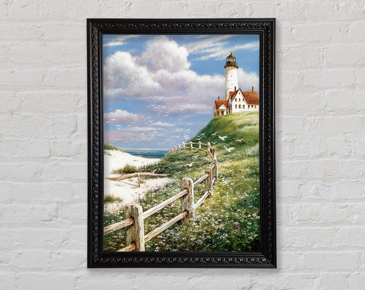 Introducing the Lighthouse By The Sea Framed Print, a stunning piece of framed art that brings the serene beauty of the coast into your home. This exquisite print captures the timeless charm of a lighthouse standing tall against the backdrop of the sea. Available in six sizes, from small to oversized, it fits perfectly in any space, whether it's a cozy nook or a spacious living room.