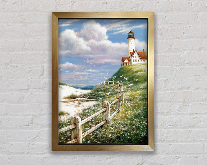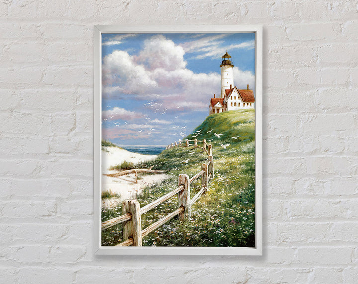 Choose from a variety of colors to match your decor and create the perfect ambiance. Each piece is handmade in the United Kingdom, ensuring exceptional craftsmanship and quality. The print comes ready to hang, making it easy to transform your space instantly. Add a touch of coastal elegance to your home with the Lighthouse By The Sea Framed Print, where art meets tranquility.