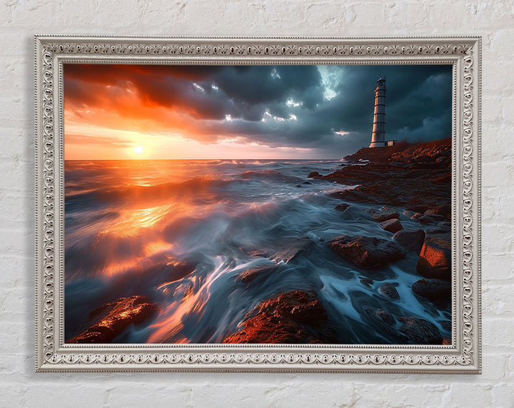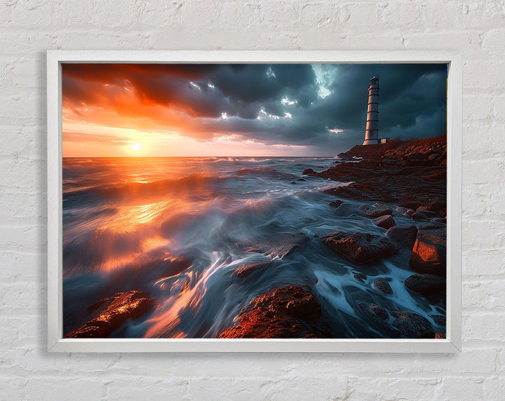 Introducing the Lighthouse On The Rocks Framed Print, a stunning piece of framed art that captures the serene beauty of a lighthouse standing proud against a rocky shoreline. Available in six sizes, from small to oversized, you can find the perfect fit for any space in your home or office. This exquisite print comes in a variety of colors, allowing you to match it seamlessly with your decor. Each piece is meticulously handmade in the United Kingdom, ensuring high-quality craftsmanship. Ready to hang straight out of the box, this framed art offers a hassle-free way to enhance your living space with a touch of coastal charm.