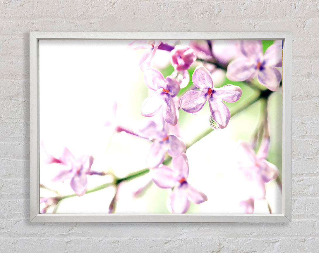 Gerahmter Druck „Fliederblumen“, erhältlich in mehreren Rahmenfarben. Fertig zum Aufhängen aus der Schachtel und handgefertigt im Vereinigten Königreich.