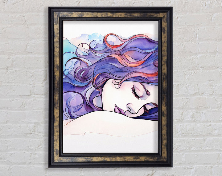 Introducing the Lilac Woman Sleeping Framed Print, a stunning piece of framed art that will elevate any room. This beautiful print captures the serene image of a woman in peaceful slumber, surrounded by calming shades of lilac. Available in six sizes, from small to oversized, you can choose the perfect fit for your space. The print comes in a variety of colors to match any decor and is ready to hang, making it easy to add a touch of elegance to your home. Each piece is handmade in the United Kingdom, ensuring high quality and craftsmanship. Enhance your living space with this exquisite framed art today!