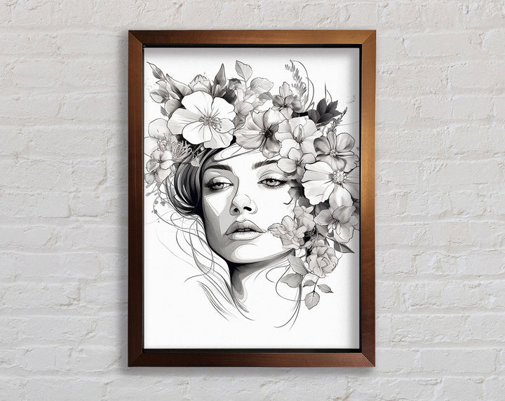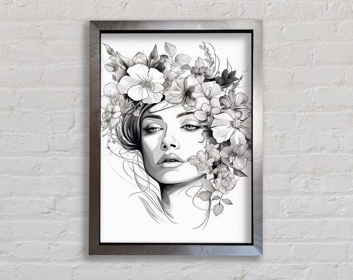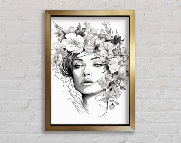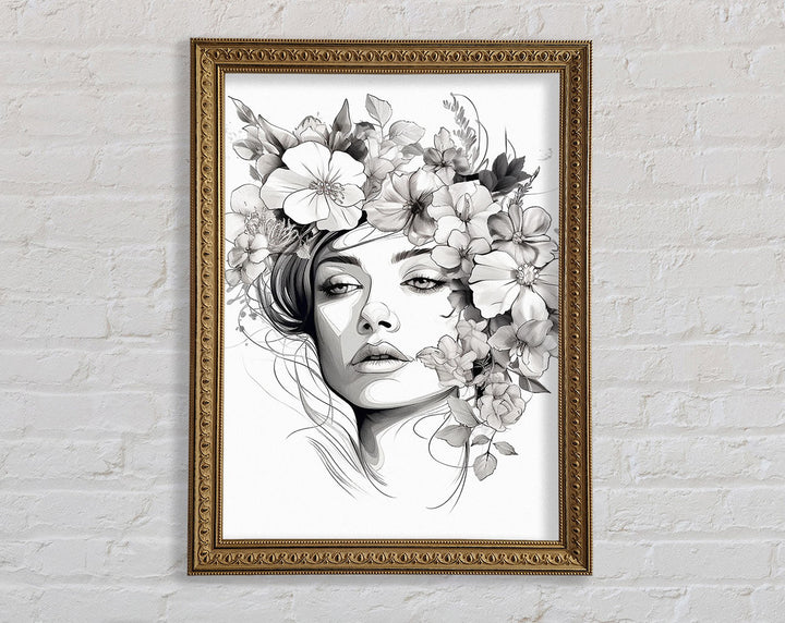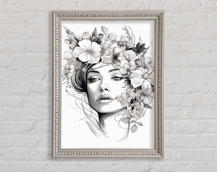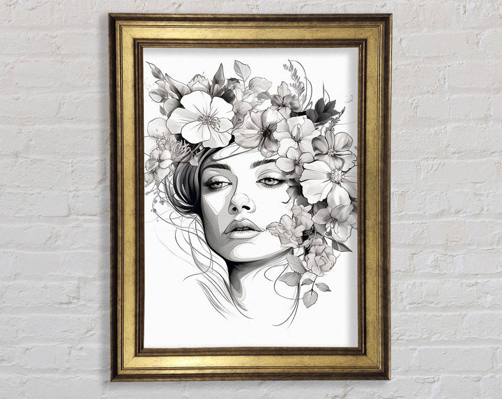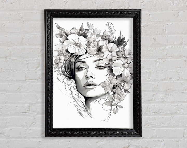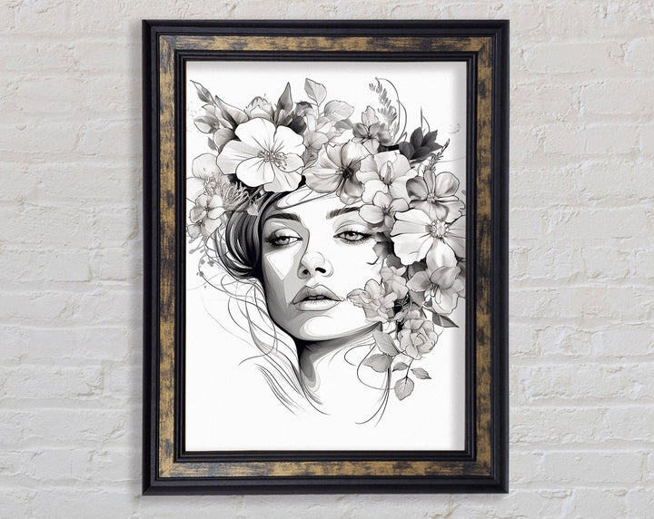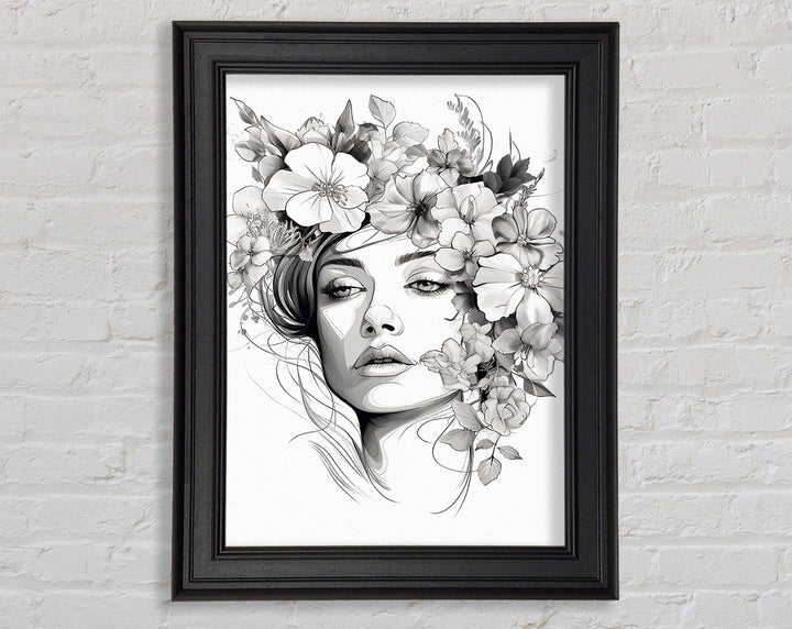Line Art Head With Abstract Flowers Framed Print